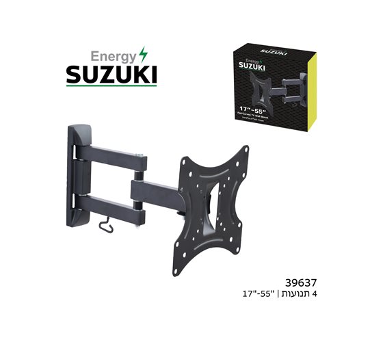 סוזוקי זרוע 4 תנועות 17-55 שחור דגם : MD2134L עומס מירבי כ 40 ק”ג תאימות : 400/400 מ”מ אריזה צבעונית קשיחה מותג SUZUKI ENERGY