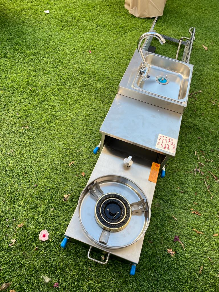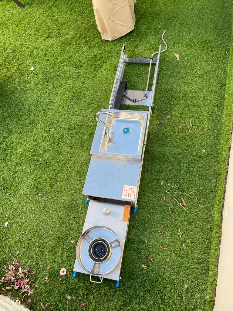 כמות של מגירה נשלפת כולל כיור וברז מתקפל כולל כירת גז