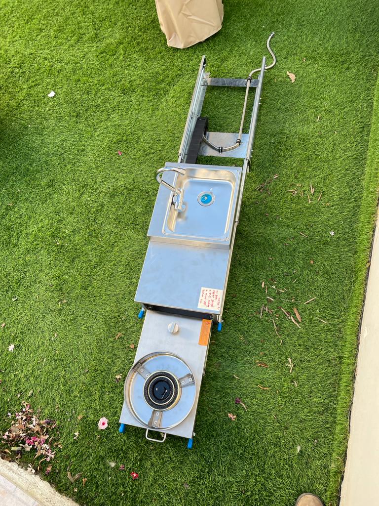 מגירה נשלפת כולל כיור וברז מתקפל כולל כירת גז