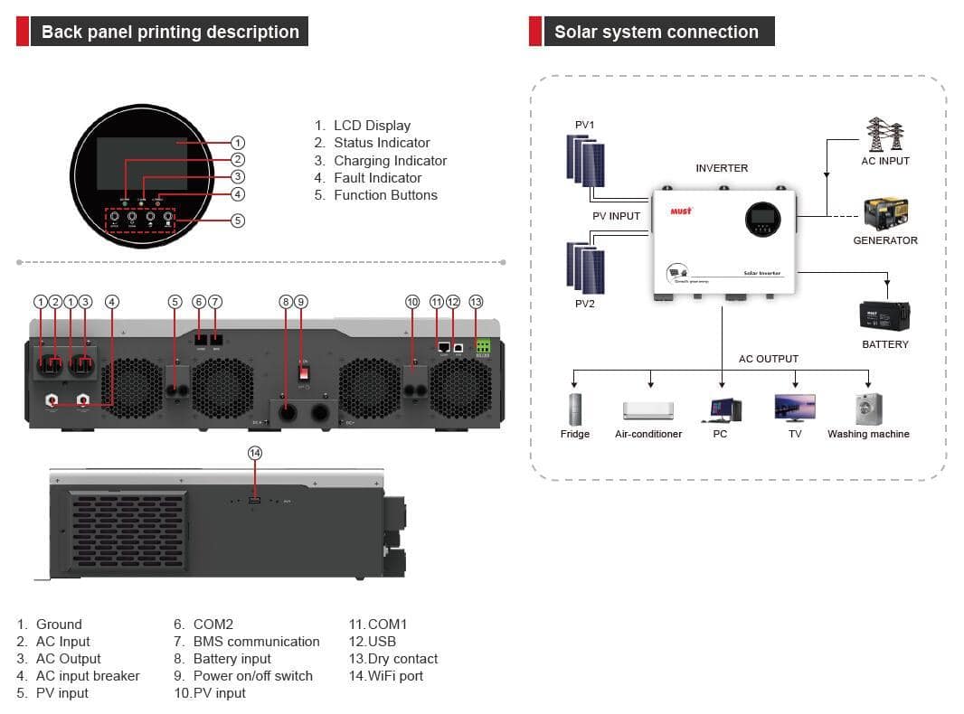 ממיר מתח 48V/10KW עם 2 בקרי טעינה MUST – MPPT 100A
